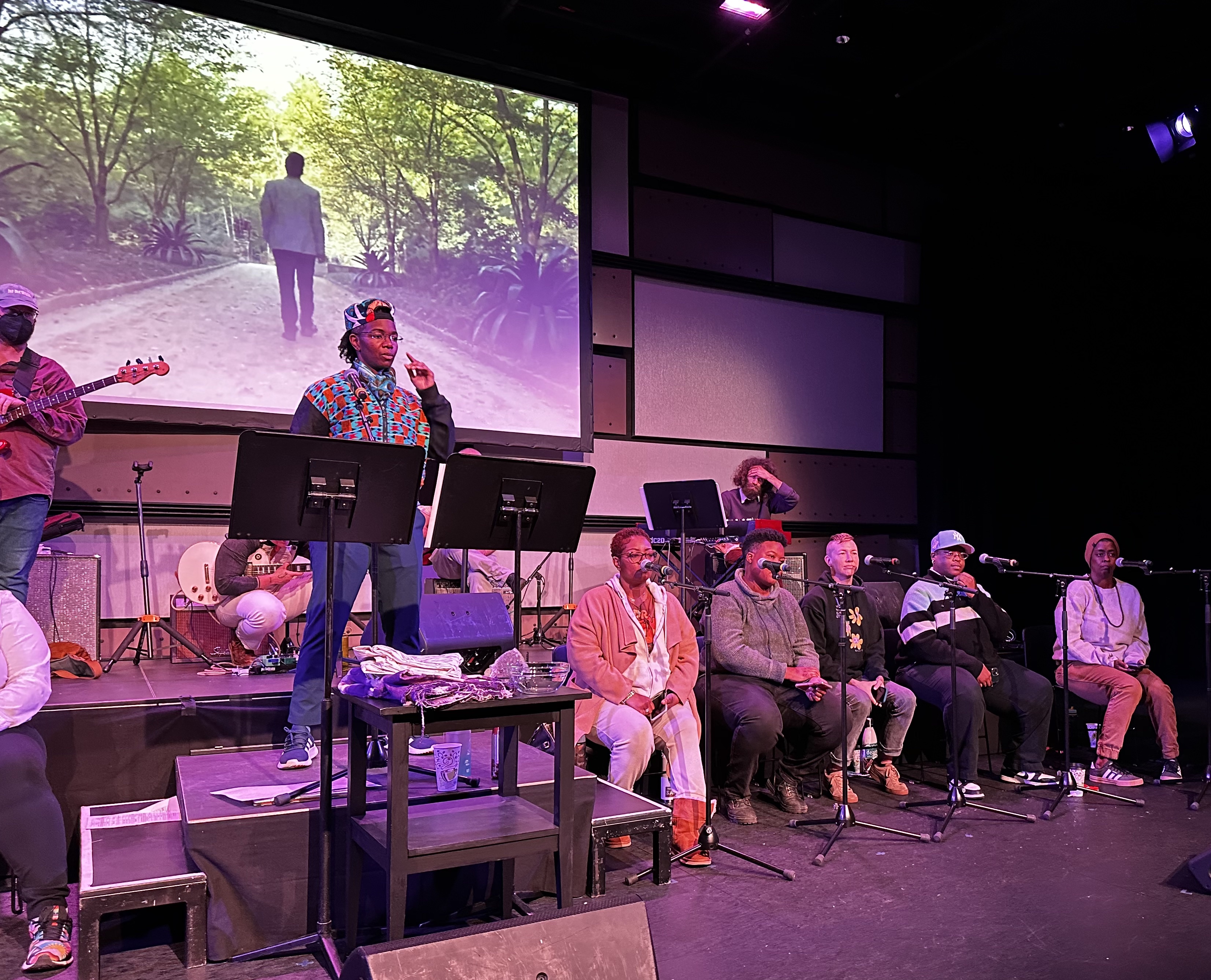 Sangodare has been composing since childhood and facilitating collective singing since 2002 including a stint as Minister of Music at Unity Fellowship of Christ Church in Atlanta, Ga. In 2021 Sangodare began a collaboration with Toshi Reagon (rockstar and creator, along with her mother Bernice Johnson Reagon, of The Octavia E. Butler Parable of the Sower Opera) in which Toshi provided support for Sangodare to develop and present an Opera or Performance. Sangodare presented a works in progress of Transcend with Toshi and her band in 2021 and a full preview in 2023 with Sangodare's own band and choir called The Congregation.