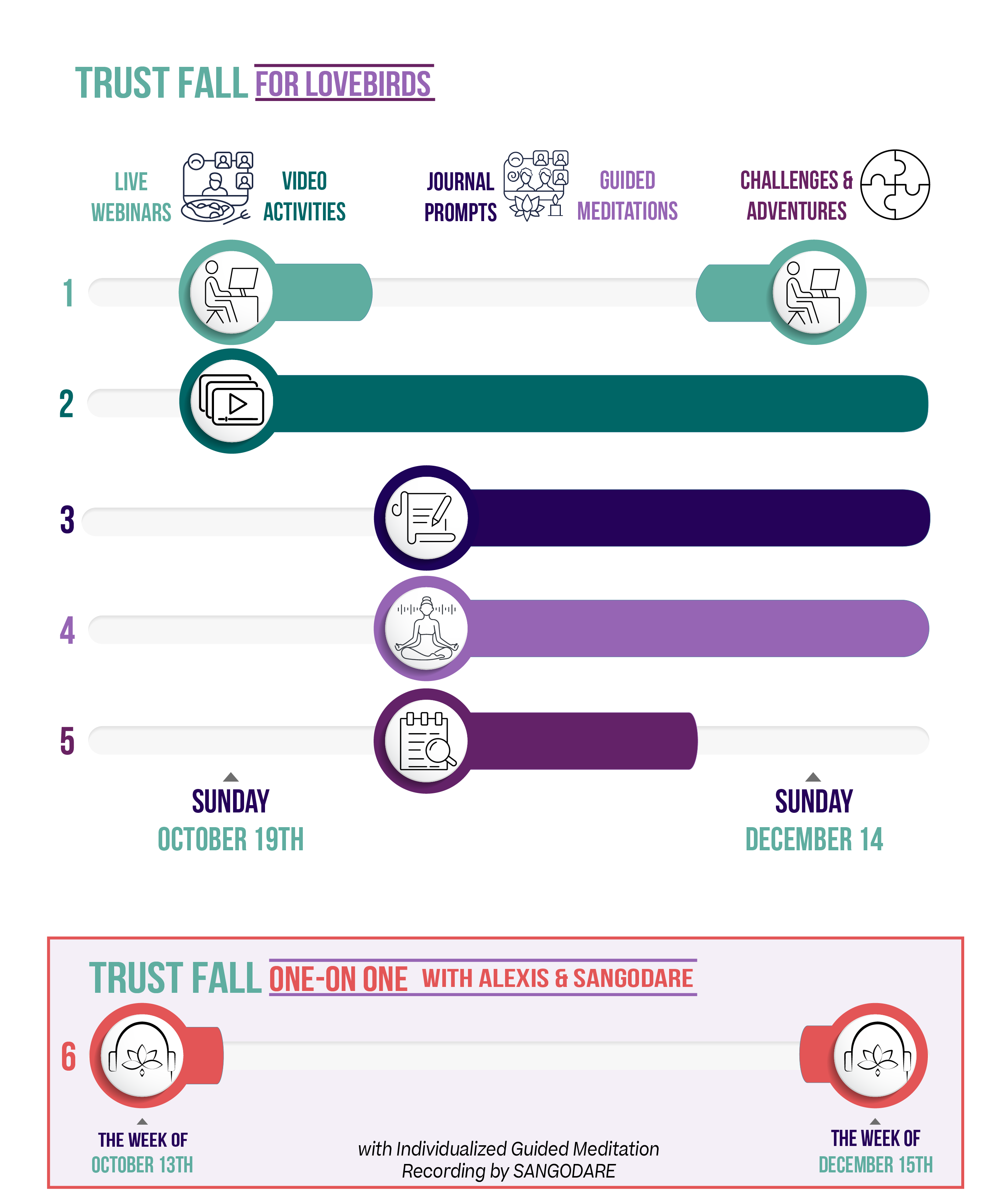 If you want even more personalized accompaniment you can add 2 one hour coaching sessions with Alexis and Sangodare and a custom journal and other goodies in the mail!